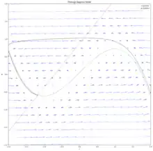 - When , we can easily see the separatrix and the two basins of attraction by solving for the trajectories backwards in time.