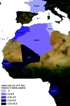 June 2010–April 2012 Prevalence of Rickettsia felis infection Gabon, Senegal, Mali, Algeria, Morocco, France | |