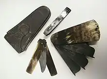 The earliest known examples are made of bronze with a myrtle-leaf shape to the blade. In the 17th and 18th centuries, the German Fliete and French flamettes were developed. These devices with their right-angle blades are the earliest forms of what collectors now refer to as the fleam.[3]