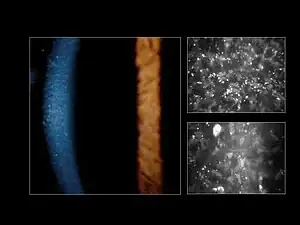 Appearance of the cornea by slit-lamp biomicroscopy (left image) and by confocal microscopy (right image) (Courtesy Dr. Charles N. McGhee) | |