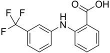 Flufenamic acid (FFA) is a member of the anthranilic acid derivatives (or fenamate) class of nonsteroidal anti-inflammatory drugs (NSAIDs).[1]: 718 Like other members of the class, it is a cyclooxygenase (COX) inhibitor, preventing the formation of prostaglandins.[2] FFA is known to bind to and reduce the activity of prostaglandin F synthase and activate TRPC6.[3]