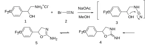 2-amino-1-[4-(trifluoromethyl)phenyl]ethanol [776-02-3] (1) cyanogen bromide [506-68-3] (2)