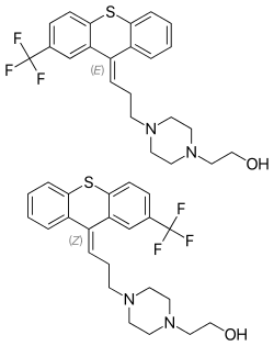 Flupentixol (INN), also known as flupenthixol (former BAN), marketed under brand names such as Depixol and Fluanxol is a typical antipsychotic drug of the thioxanthene class. It was introduced in 1965 by Lundbeck. In addition to single drug preparations, it is also available as flupentixol/melitracen—a combination product containing both melitracen (a tricyclic antidepressant) and flupentixol (marketed as Deanxit). Flupentixol is not approved for use in the United States. It is, however, approved for use in the UK,[5] Australia,[6] Canada, Russian Federation,[7] South Africa, New Zealand, Philippines, Iran, Germany, and various other countries.