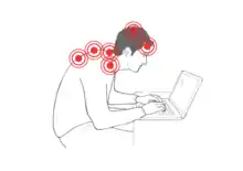 - ↑ Hakala, Paula T.; Saarni, Lea A.; Punamäki, Raija-Leena; Wallenius, Marjut A.; Nygård, Clas-Håkan; Rimpelä, Arja H. (2012). "Musculoskeletal symptoms and computer use among Finnish adolescents – pain intensity and inconvenience to everyday life: A cross-sectional study". BMC Musculoskeletal Disorders. 13: 41. doi:10.1186/1471-2474-13-41. PMC 3348031. PMID 22439805.