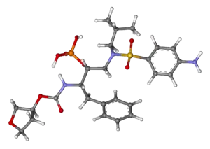 - ↑ Shen CH, Wang YF, Kovalevsky AY, Harrison RW, Weber IT (September 2010). "Amprenavir complexes with HIV-1 protease and its drug-resistant mutants altering hydrophobic clusters". The FEBS Journal. 277 (18): 3699–714. doi:10.1111/j.1742-4658.2010.07771.x. PMC 2975871. PMID 20695887.