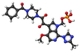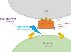 It was under development by ViiV Healthcare / GlaxoSmithKline for use in the treatment of HIV infection. By blocking the gp120 receptor of the virus, it prevents initial viral attachment to the host CD4+ T cell and entry into the host immune cell; its method of action is a first for HIV drugs.[10] Because it targets a different step of the viral lifecycle, it offers promise for individuals with virus that has become highly resistant to other HIV drugs.[11] Since gp120 is a highly conserved area of the virus, the drug is unlikely to promote resistance to itself.[12] Investigators found that enfuvirtide-resistant and ibalizumab-resistant HIV envelopes remained susceptible to Fostemsavir. Conversely, Fostemsavir-resistant HIV remained susceptible to all the entry inhibitors. Furthermore, HIV isolates that do not require the CD4 receptor for cell entry were also susceptible to Fostemsavir, and the virus did not escape the attachment inhibitor by becoming CD4-independent. Prior in vitro studies showed that Fostemsavir inhibits both CCR5-tropic and CXCR4-tropic HIV.[10]