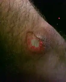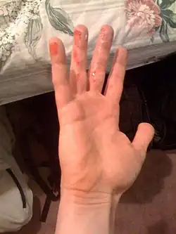 A friction burn is a form of abrasion caused by the friction of skin rubbing against a surface. A friction burn may also be referred to as skinning, chafing, or a term named for the surface causing the burn such as rope burn, carpet burn or rug burn. Because friction generates heat, extreme cases of chafing may result in genuine thermal burning of the outer layers of skin.[1]