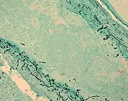 Fungus (black) in brain tissue | |