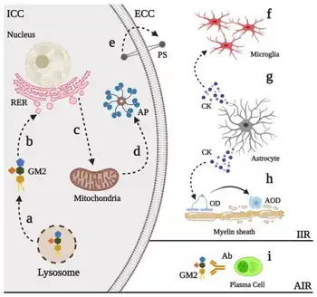 - 1 2 Mahuran DJ (1999-10-08). "Biochemical consequences of mutations causing the GM2 gangliosidoses". Biochimica et Biophysica Acta (BBA) - Molecular Basis of Disease. 1455 (2–3): 105–138. doi:10.1016/S0925-4439(99)00074-5. PMID 10571007.