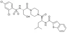 - ↑ Thorneloe KS, Sulpizio AC, Lin Z, Figueroa DJ, Clouse AK, McCafferty GP, et al. (August 2008). "N-((1S)-1-{[4-((2S)-2-{[(2,4-dichlorophenyl)sulfonyl]amino}-3-hydroxypropanoyl)-1-piperazinyl]carbonyl}-3-methylbutyl)-1-benzothiophene-2-carboxamide (GSK1016790A), a novel and potent transient receptor potential vanilloid 4 channel agonist induces urinary bladder contraction and hyperactivity: Part I". The Journal of Pharmacology and Experimental Therapeutics. 326 (2): 432–42. doi:10.1124/jpet.108.139295. PMID 18499743. S2CID 517735.
