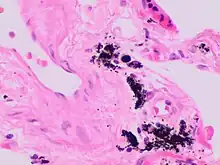 - ↑ Sagoh T, Itoh K, Togashi K, Shibata T, Nishimura K, Minami S, Asato R, Noma S, Fujisawa I, Yamashita K (1989). "Gamna-Gandy bodies of the spleen: evaluation with MR imaging". Radiology. 172 (3): 685–7. doi:10.1148/radiology.172.3.2672093. PMID 2672093.