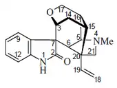 - 1 2 3 4 Seigler DS (1998). "Indole Alkaloids" (review). Plant Secondary Metabolism. Boston, MA: Kluwer/Springer. pp. 628–654, esp. 646ff. ISBN 978-0412019814. Retrieved February 18, 2017.