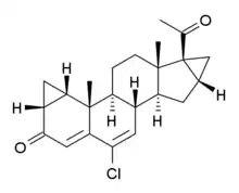 Gestaclone (INN, USAN) (developmental code name SH-1040), also known as 6-chloro-1α,2α:16α,17-bismethylene-4,6-pregnadiene-3,20-dione, is a steroidal progestin of unique chemical structure derived from progesterone that was first described in 1967 and was never marketed.[1]