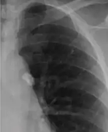 It is a small area of granulomatous inflammation, only detectable by chest X-ray if it calcifies or grows substantially (see tuberculosis radiology).[2] Typically these will heal, but in some cases, especially in immunosuppressed patients, it will progress to miliary tuberculosis (so named due to the granulomas resembling millet seeds on a chest X-ray).[2]