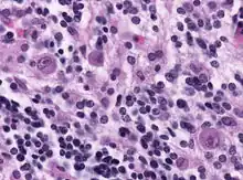 Giemsa stain (/ˈɡmzə/), named after German chemist and bacteriologist Gustav Giemsa, is a nucleic acid stain used in cytogenetics and for the histopathological diagnosis of malaria and other parasites.[1]