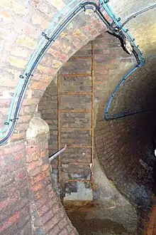 The earliest sewers were ditches to remove standing water from muddy locations where dry ground was preferable for human activity. Early sewers served a function similar to modern storm drains (sometimes called storm sewers.) Combined sewers evolved from the practice of using flow in early drainage ditches to remove other wastes including draft animal feces.[1] Sewers became offensive as waste concentrations increased in communities with high population density. Culverts were installed to cover the offensive liquids. Prosperous communities used masonry and brickwork to cover early sewers. Terracotta pipes were used for low volume sewers.[6] The portion of a sewer discharging into a natural water feature is called an outfall.[7]