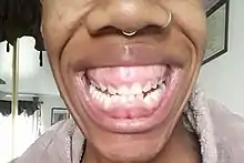 - ↑ Monaco A, Streni O, Marci MC, Marzo G, Gatto R, Giannoni M (2004). "Gummy smile: clinical parameters useful for diagnosis and therapeutical approach". The Journal of Clinical Pediatric Dentistry. 29 (1): 19–25. doi:10.17796/jcpd.29.1.y01l3r4m06q3k2x0. PMID 15554398.