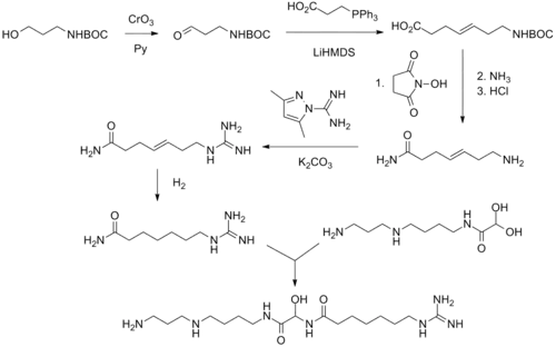 - ↑ Dischino, D. D.; Cook, D. J.; Saulnier, M. G.; Tepper, M. A. (1993). "Synthesis of tritium labeled (±) 15-deoxyspergualin trihydrochloride". Journal of Labelled Compounds and Radiopharmaceuticals. 33 (2): 137. doi:10.1002/jlcr.2580330208.
