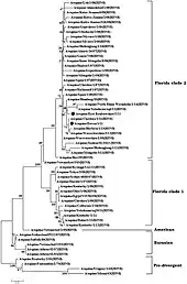 In 1963, the H3N8 (A/equine/2/Miami/63) subtype created an epidemic of equine influenza in Miami and subsequently spread throughout North and South America and Europe, creating massive outbreaks during 1964 and 1965. Since 1963, the H3N8 virus has drifted along a single lineage at a rate of 0.8 amino acid substitutions per year. Between 1978 and 1981, there were widespread epidemics of the A/equine/2 strain throughout the US and Europe despite the development of vaccines. Since the late 1980s, evolution of the H3N8 virus has diverged into two families: an "American-like" lineage and a "European-like" lineage.[6] A 1997 study found H3N8 was responsible for over one quarter of the influenza infections in wild ducks.[7]