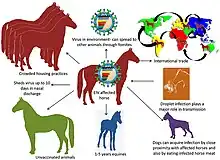 Subclinical infection with virus shedding can occur in vaccinated horses, particularly where there is a mismatch between the vaccine strains and the virus strains circulating in the field. Such infections contribute to the spread of the disease.[17]