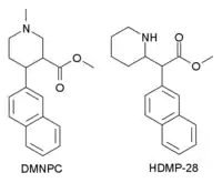 HDMP-28 or methylnaphthidate is a piperidine based stimulant drug, closely related to methylphenidate, but with the benzene ring replaced by naphthalene. It is a potent dopamine reuptake inhibitor, with several times the potency of methylphenidate and a short duration of action,[1] and is a structural isomer of another potent dopamine reuptake inhibitor, N,O-Dimethyl-4-(2-naphthyl)piperidine-3-carboxylate. It has been sold as a designer drug since around 2015.[2]