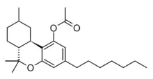 HHCP-O-acetate (HHCPO, HHCP-O) is a semi-synthetic derivative of tetrahydrocannabiphorol (THCP) derived in several steps by hydrogenation to hexahydrocannabiphorol (HHCP) followed by acetylation of the OH group. It has been found as a component of grey-market cannabis products such as e-cigarette liquids and edible gummy lollies, and is allegedly a potent and long-lasting psychoactive cannabinoid.[1]