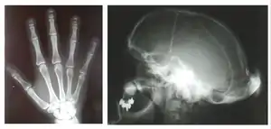 - ↑ Cortés-Martín J, Díaz-Rodríguez L, Piqueras-Sola B, Rodríguez-Blanque R, Bermejo-Fernández A, Sánchez-García JC (August 2020). "Hajdu-Cheney Syndrome: A Systematic Review of the Literature". International Journal of Environmental Research and Public Health. 17 (17): 6174. doi:10.3390/ijerph17176174. PMC 7504254. PMID 32854429.