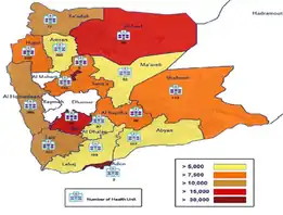 - ↑ "Service Availability and Health Facilities Functionality in 16 Governorates" (PDF). Yemen Ministry of Public Health & Populatione, World Health Organization Yemen Country Office. October 2016. Retrieved 27 January 2019.