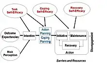 Principle 5: Phase-specific self-efficacy. Perceived self-efficacy is required throughout the entire process. However, the nature of self-efficacy differs from phase to phase. This difference relates to the fact that there are different challenges as people progress from one phase to the next one. Goal setting, planning, initiation, action, and maintenance pose challenges that are not of the same nature. Therefore, one should distinguish between preactional self-efficacy, coping self-efficacy, and recovery self-efficacy.[14] Sometimes the terms task self-efficacy instead of preaction self-efficacy, and maintenance self-efficacy instead of coping and recovery self-efficacy are preferred.