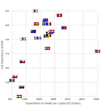 Cost of healthcare services in Mexico is variable and dependent on the nature of the service and the institution utilized. Generally, health costs associated with use of the public healthcare sector are higher than their private counterparts.[41] Furthermore, individuals not insured under any current health insurance scheme most often utilize private doctors instead of public institutions. A study conducted in 2015 by Doubova et al. determined that roughly four percent of the uninsured population was faced with catastrophic expenditure of some sort at some point. Additionally, it was found that over half of uninsured individuals had not accessed care despite having a health issue due to financial issues.[57] Additionally, a report by Munoz (2013) established that in the period following the implementation of the new 2003 health reform to the end of the decade, out-of-pocket patient expenditures, related to hospitalization, visit, medicine, diagnostic tests, alternative options, dental care, prolonged treatments, among others, had remained relatively similar.[57]