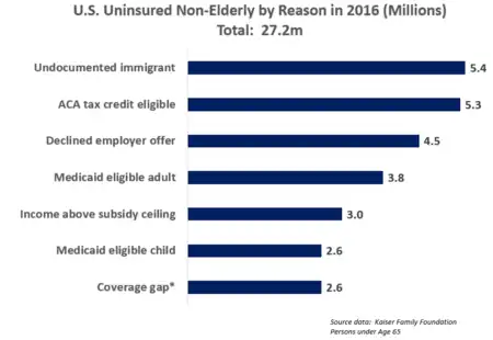 - ↑ "Estimates of Eligibility for ACA Coverage among the Uninsured in 2016". kff.org. 25 October 2017. Archived from the original on 15 January 2019. Retrieved 5 April 2022.