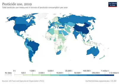- ↑ Jeyaratnam J (1990). "Acute pesticide poisoning: a major global health problem". World Health Statistics Quarterly. Rapport Trimestriel de Statistiques Sanitaires Mondiales. 43 (3): 139–144. PMID 2238694.