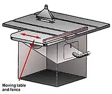 - To collect wood dust from the saw teeth, place a suction nozzle above the table, at the rear of the w blade.[3]