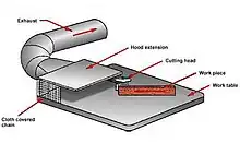 - Provide LEV under the blade slot. To increase the collection area of the hood, add holes (1/8 inch in diameter) in the table around the ot area.[3]