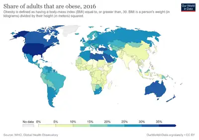 For decades malnutrition has been understood mostly as undernutrition in low- and middle-income countries (LMICs).[15] Although undernutrition decreased significantly from the early 1990s,[16] the prevalence of obesity in the world has nearly tripled since 1975.[17]
