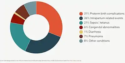 The major leading causes of neonatal deaths in Niger in 2017 is shown in the pie chart below.[26]