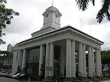 Stamford Raffles arrived in Singapore in January 1819, with a single accompanying doctor, a sub-assistant surgeon named Thomas Prendergast, then the medical officer in Penang's General Hospital.[7]: 12 After a treaty was signed allowing the British East India Company to set up a trading post in Singapore, Prendergast oversaw the newly established post's medical needs until William Montgomerie arrived and served as Singapore's first surgeon.[8] Prendergast, as a military doctor, was put in charge of the first General Hospital on the island — a small shed erected near the junction of Bras Basah Road and Stamford Road in 1821.[7]: 12