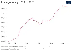 Total public and private health expenditure per capita was US$59 in 2013.[15] Public financing for health was 4.3 percent of GDP in 2013,[16] well below the target of 15 percent set in the 2001 Abuja Declaration.[17] See also Health in Uganda