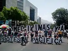 Venezuelans protesting in 2017 for medicine due to the shortages in Venezuela