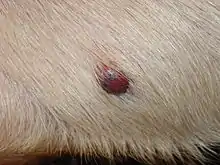 - ↑ Ward, H.; Fox, L. E.; Calderwood-Mays, M. B.; Hammer, A. S.; Couto, C. G. (September 1994). "Cutaneous hemangiosarcoma in 25 dogs: a retrospective study". Journal of Veterinary Internal Medicine. 8 (5): 345–348. doi:10.1111/j.1939-1676.1994.tb03248.x. ISSN 0891-6640. PMID 7837111.