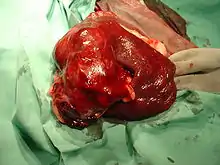 Hemangiosarcoma of the spleen in a dog, removed after surgery | |