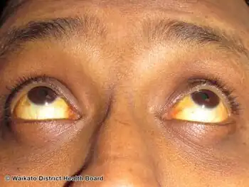 Presenting symptoms include fever, tiredness, nausea, vomiting, stomach ache, joint pains and jaundice.[1] The urine may look dark and stool may appear a clay-color.[1]