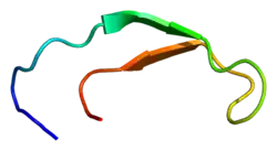 - ↑ PDB: 3H0T; Jordan JB, Poppe L, Haniu M, Arvedson T, Syed R, Li V, et al. (September 2009). "Hepcidin revisited, disulfide connectivity, dynamics, and structure". The Journal of Biological Chemistry. 284 (36): 24155–24167. doi:10.1074/jbc.M109.017764. PMC 2782009. PMID 19553669.