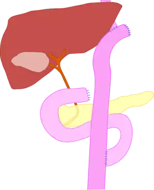 Diagram demonstrating the end result of a total gastrectomy, the most common prophylactic treatment of HDGC. In the procedure the esophagus is directly connected to the small intestine. | |