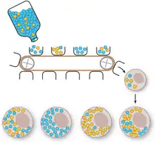 Vegetative segregation, the random partitioning of cytoplasm, is a distinguishable characteristic of organelle heredity. During cell division, the organelles are divided equally, providing each daughter cell with a random selection of plasmid genotypes.[8]