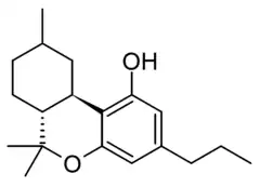 Hexahydrocannabivarin (HHCV, HHC-V) is a semi-synthetic cannabinoid derivative, the hydrogenated derivative of tetrahydrocannabivarin (THCV). It was first synthesised by Roger Adams in 1942 and produces only weak cannabinoid-like effects in animals.[1] More recently it has been sold as an ingredient in grey-market cannabinoid products. It has been investigated for potential antineoplastic activity in vitro.[2][3]