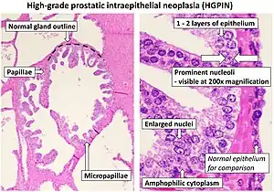 - 1 2 Bostwick DG, Qian J (March 2004). "High-grade prostatic intraepithelial neoplasia". Mod. Pathol. 17 (3): 360–79. doi:10.1038/modpathol.3800053. PMID 14739906.