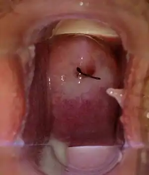 It is carried out in clean conditions, by a healthcare professional who uses a speculum to look at the cervix and vagina.[2][3] After inserting the swab to the top of the vagina, it is rotated around to obtain a sample of the discharge and subsequently the speculum is removed and the sample sent to be looked at under the microscope, for culture and sensitivity.[2][3]