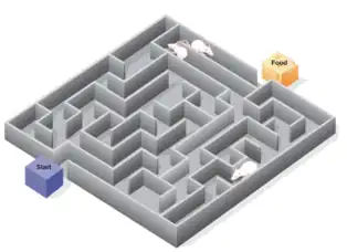 Studies on freely moving rats and mice have shown many hippocampal neurons to act as place cells that cluster in place fields, and these fire bursts of action potentials when the animal passes through a particular location. This place-related neural activity in the hippocampus has also been reported in monkeys that were moved around a room whilst in a restraint chair.[65] However, the place cells may have fired in relation to where the monkey was looking rather than to its actual location in the room.[66] Over many years, many studies have been carried out on place-responses in rodents, which have given a large amount of information.[51] Place cell responses are shown by pyramidal cells in the hippocampus and by granule cells in the dentate gyrus. Other cells in smaller proportion are inhibitory interneurons, and these often show place-related variations in their firing rate that are much weaker. There is little, if any, spatial topography in the representation; in general, cells lying next to each other in the hippocampus have uncorrelated spatial firing patterns. Place cells are typically almost silent when a rat is moving around outside the place field but reach sustained rates as high as 40 Hz when the rat is near the center. Neural activity sampled from 30 to 40 randomly chosen place cells carries enough information to allow a rat's location to be reconstructed with high confidence. The size of place fields varies in a gradient along the length of the hippocampus, with cells at the dorsal end showing the smallest fields, cells near the center showing larger fields, and cells at the ventral tip showing fields that cover the entire environment.[51] In some cases, the firing rate of hippocampal cells depends not only on place but also the direction a rat is moving, the destination toward which it is traveling, or other task-related variables.[67] The firing of place cells is timed in relation to local theta waves, a process termed phase precession.[68]