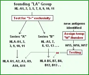 Before too long, a series "C" was uncovered. Series C has proved difficult to serotype, and the alleles in the series still carry the "w" tag signifying that status; in addition, it reminds us that Series C were not assigned names the same way as Series A and B, it has its own numeric list Cw1, Cw2, Cw3.